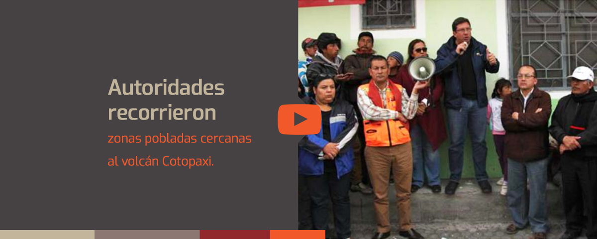 El ministro coordinador de Seguridad, César Navas, y la titular de la Secretaría Nacional de Riesgos, Pilar Cornejo, realizaron este domingo, 16 de agosto del 2015, un recorrido por las poblaciones de José Guango, José Gungobajo y Mulaló, en los alrededores del volcán, provincia de Cotopaxi. En el parque de José Guango, un grupo de moradores y directivos de la Junta Parroquial plantearon reclamos a las autoridades. Doris del Pilar Guano solicitó información sobre el estado del coloso.