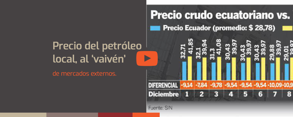 Ecuador cerró con un promedio mensual del precio del petróleo por debajo de los $ 30. Según el Servicio Nacional de Información (SNI), entre el 1 y el 21 de diciembre, el promedio fue $ 28,78 con un castigo con respecto al crudo referencial (que es el WTI) de $ 8,67.